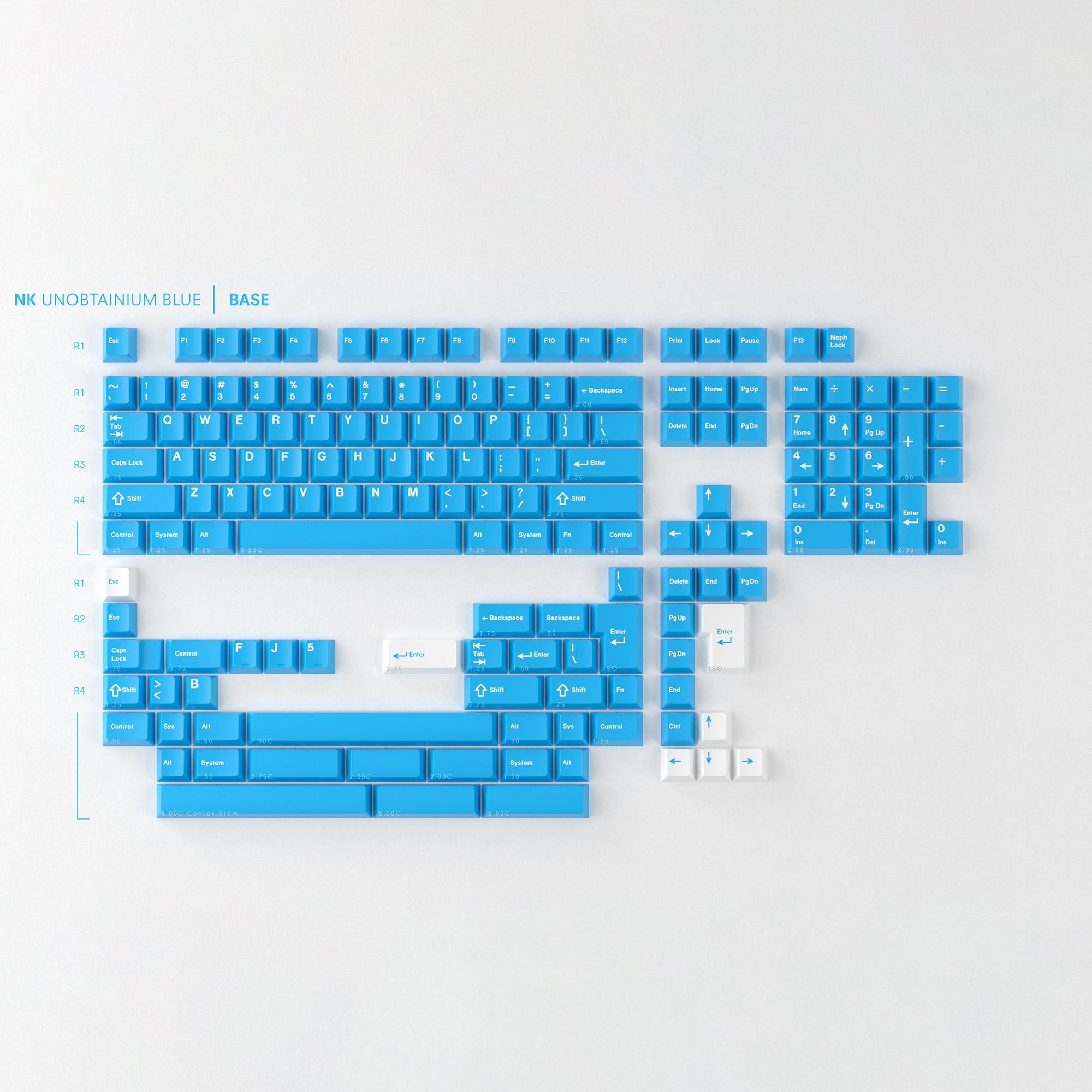 Whispered of only in the brightest corners of the skynet, it's true name long forgotten to the march of time... A keycap set so... blue that to gaze upon it brings a joy so buoyant as to cast shadows on all products prior. Crafted the official color of NovelKeys (PMS 2995C), it's already a sight to behold, but when paired with the Superfan novelty pack it becomes an elevated tribute to a company who's mission has always been to never take itself too seriously.